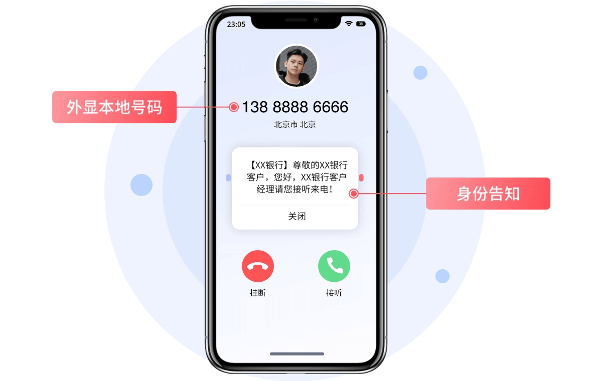 支持外显全国本地归属地号码,提升电话接通率